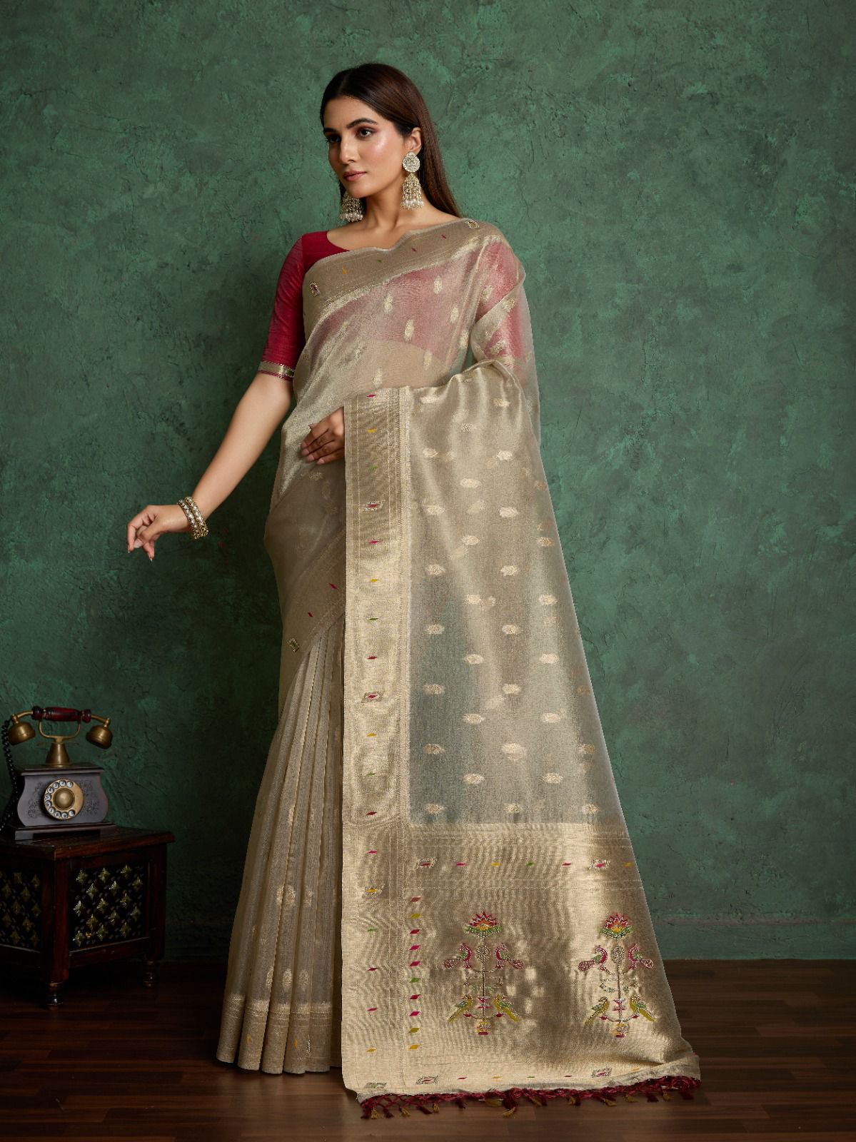 Elevate your ethnic wardrobe with this regal Pure Tissue Paithani Saree, enhanced with sparkling Jharkan work ā a perfect blend of heritage artistry and festive glamour.