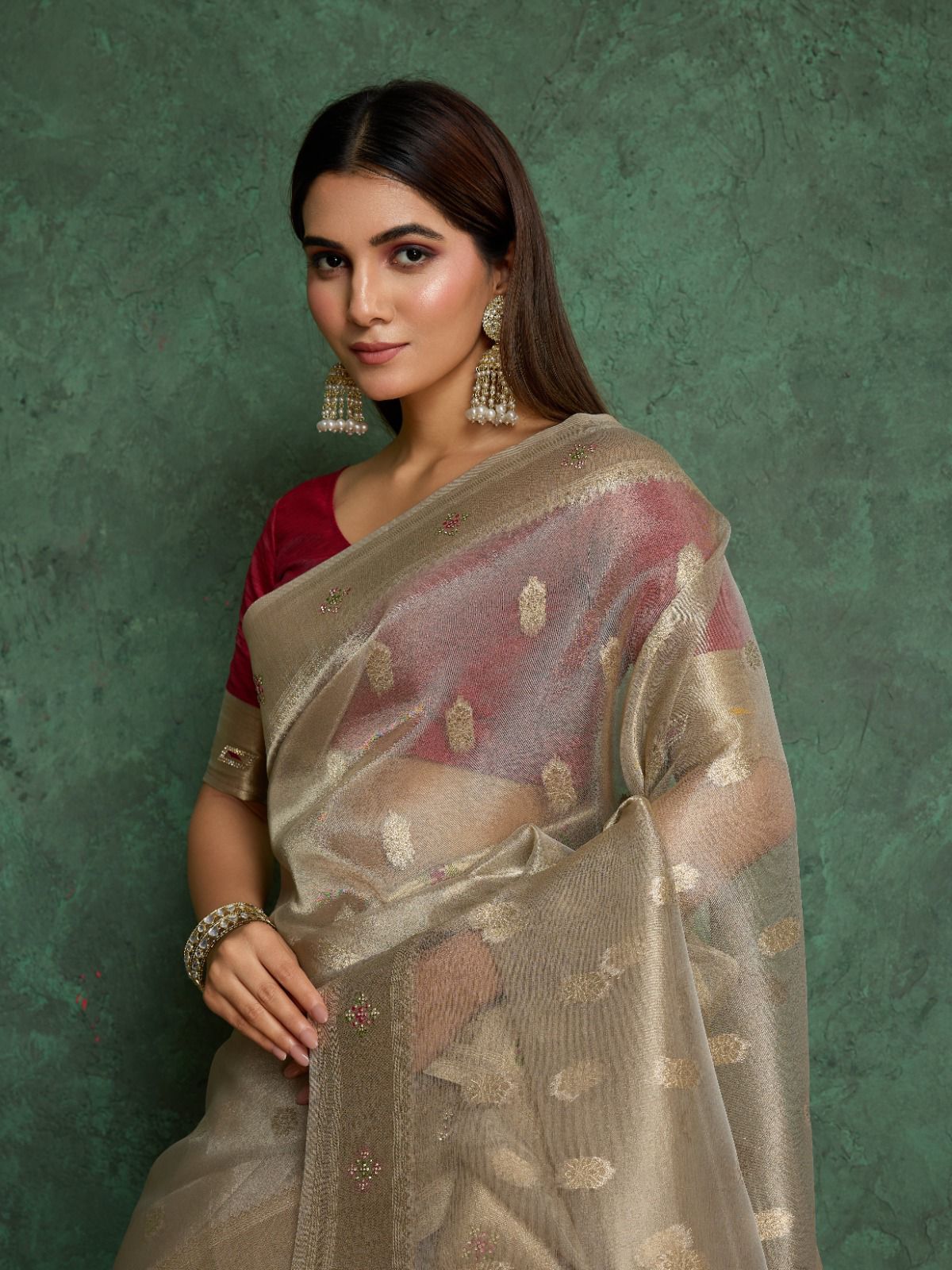 š Dry clean only to preserve the delicate tissue fabric and sparkle of the Jharkan work.