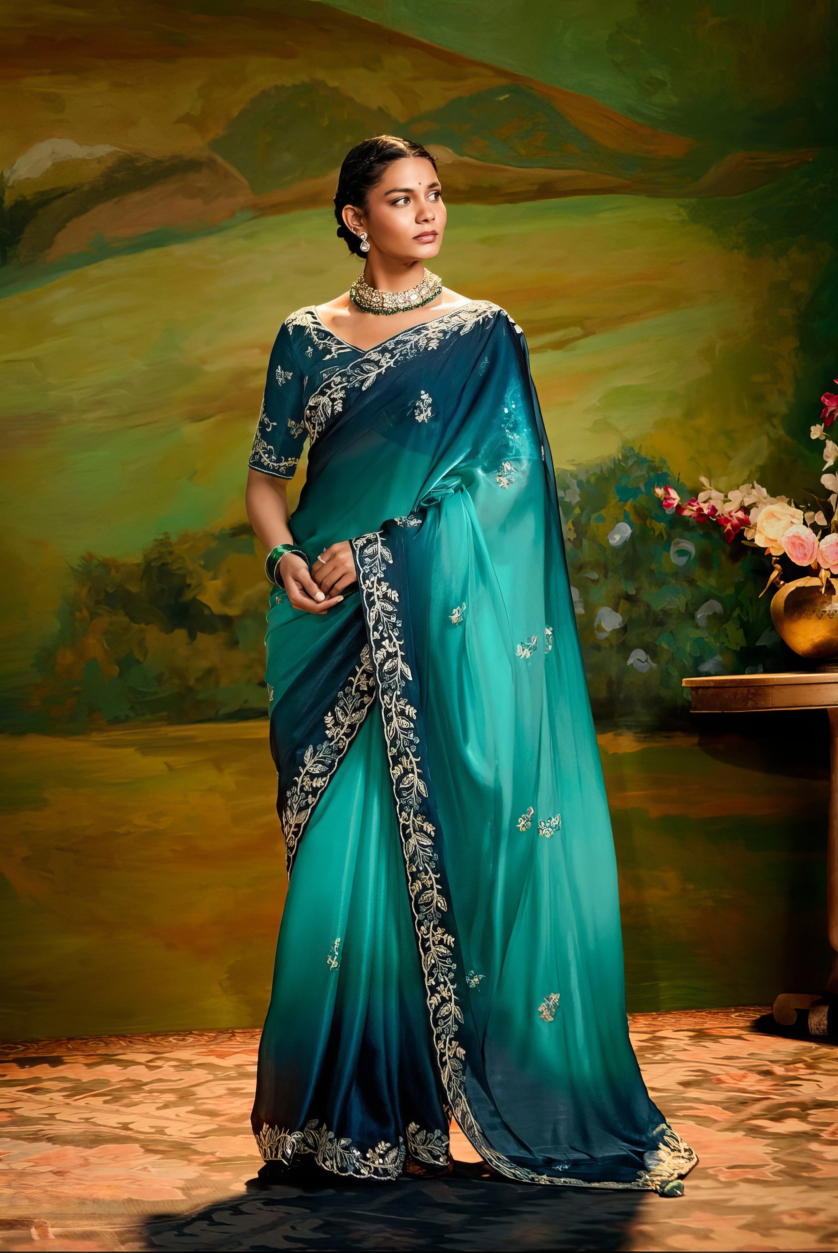 Enhanced with a beautifully embroidered border and intricate embroidery all over the body, showcasing refined craftsmanship.
