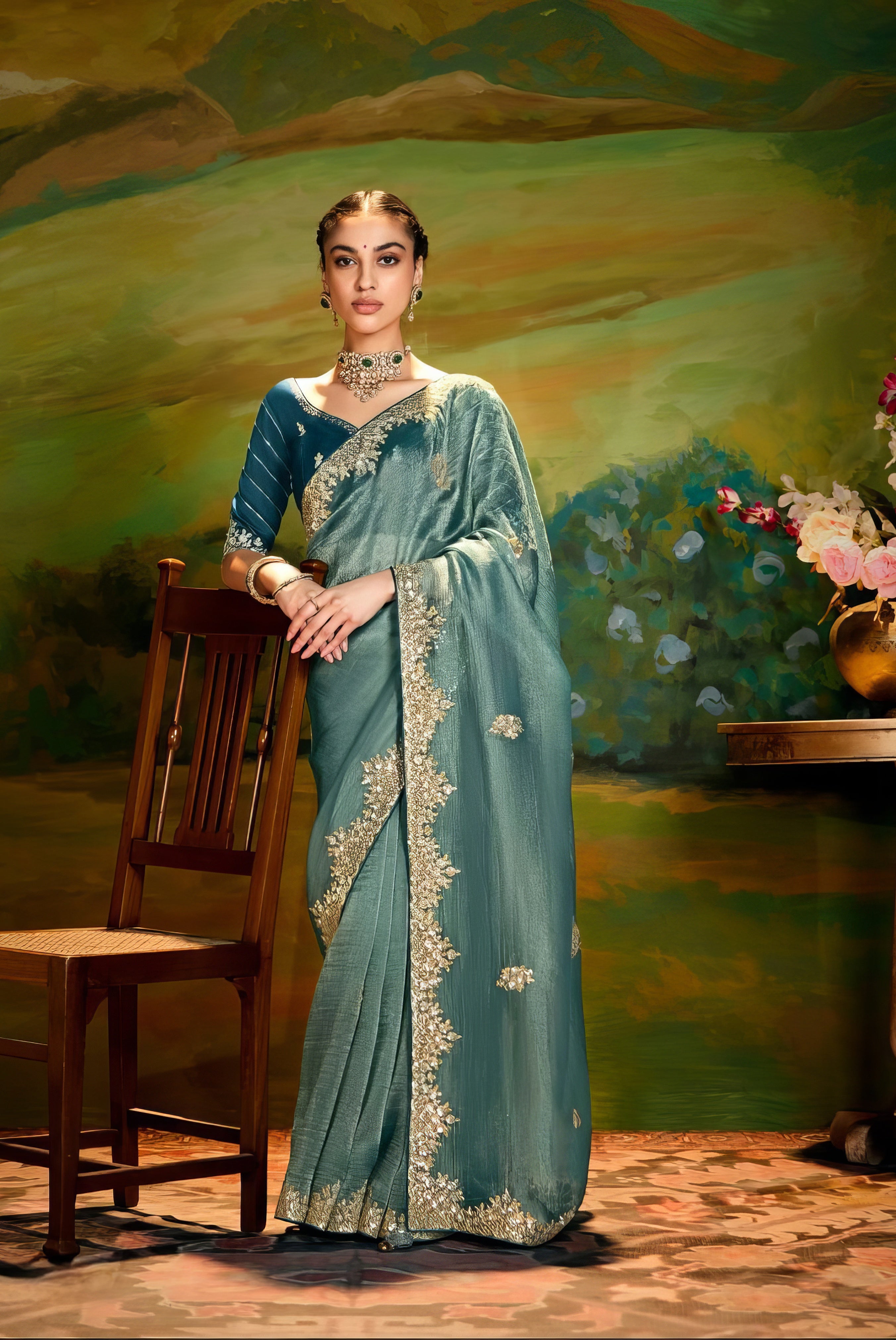 Teal Blue — a rich and captivating shade that adds depth and sophistication to your festive attire.