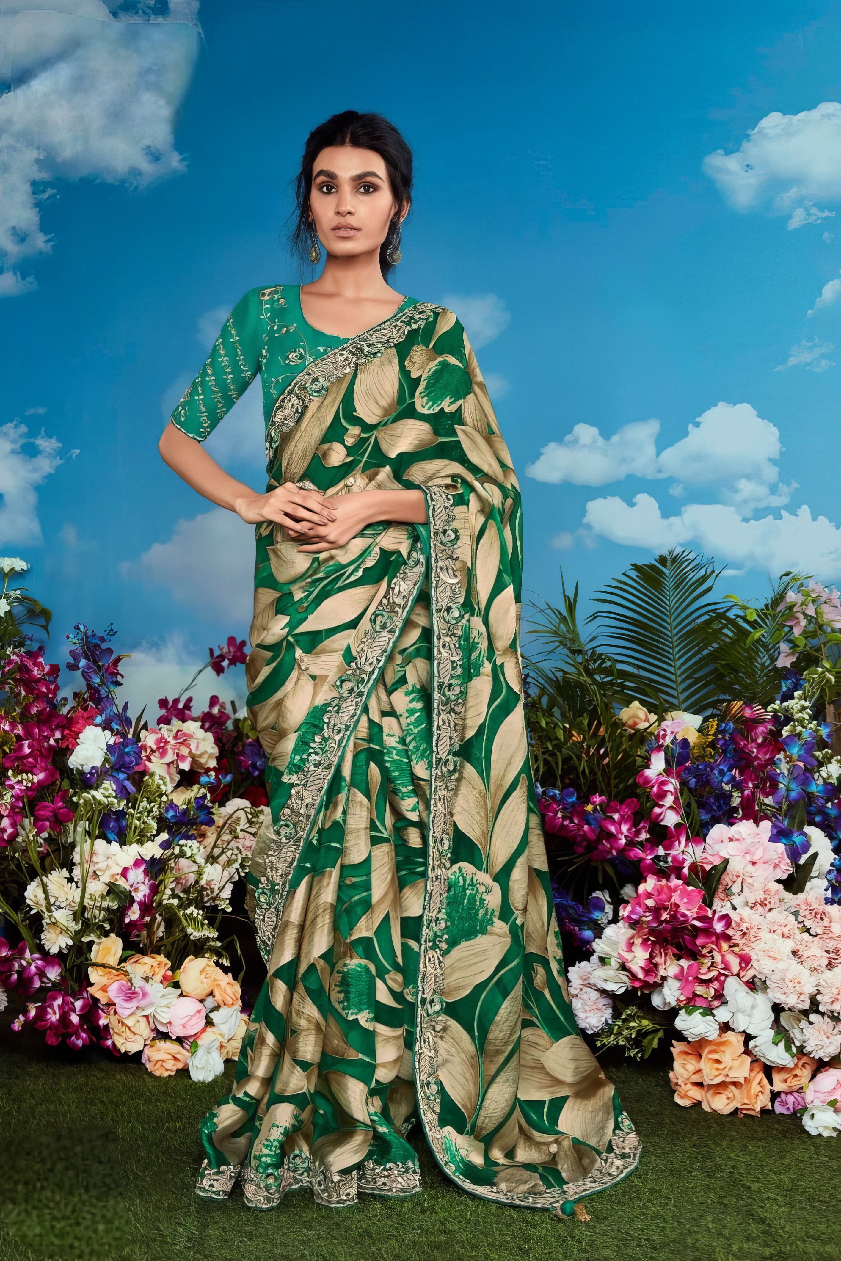 Aspire to make a mark in the world of style with this stunning Pure Brasso Classic Saree that breathes life into your fashion dreams. Steal hearts effortlessly with mesmerizing and innovative floral patterns, intricately embroidered to perfection.
