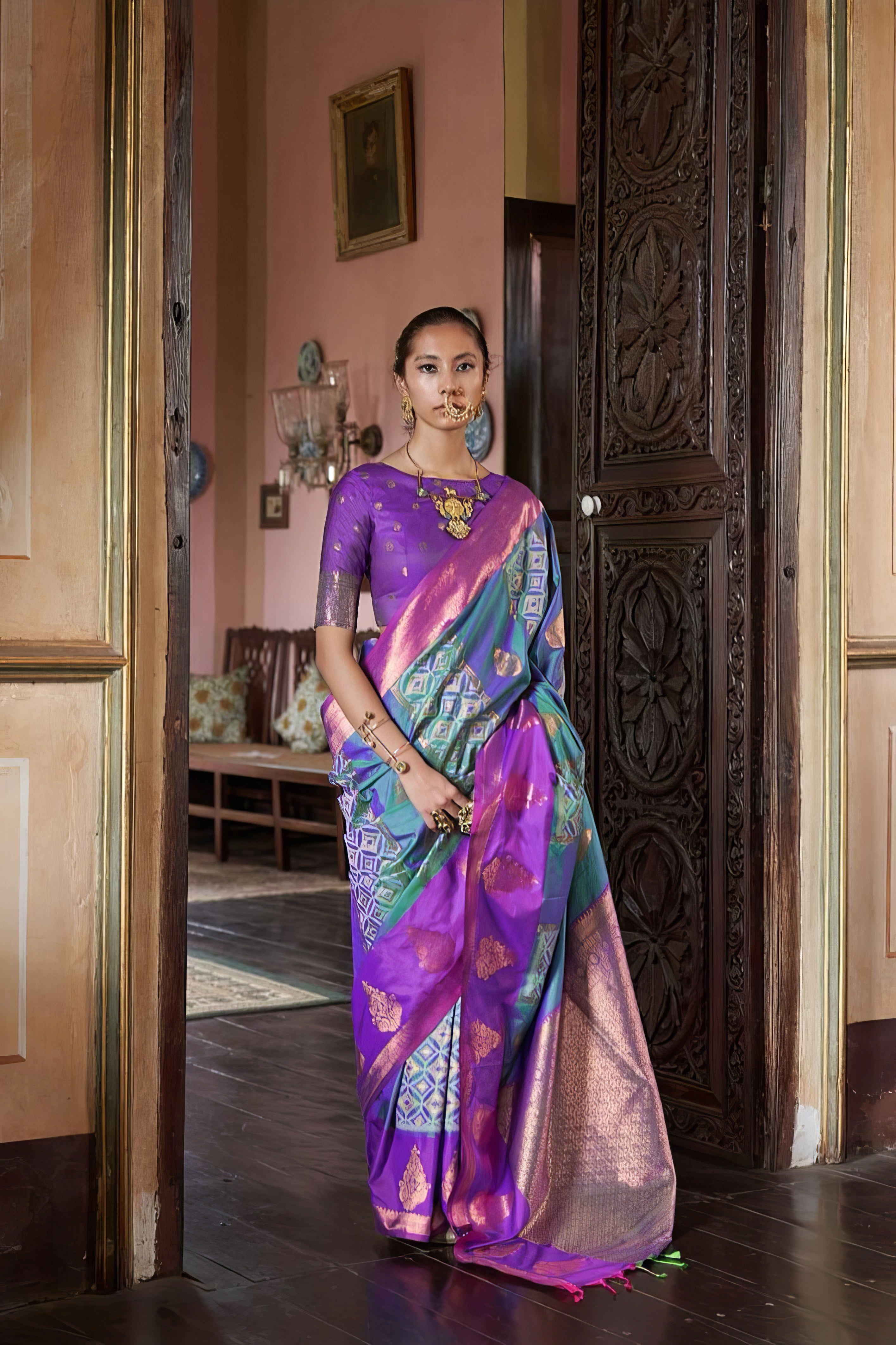 A timeless classic, this fully stitched saree is crafted from luxurious pure silk featuring authentic Pochampally weaving. Known for its rich texture and traditional geometric patterns, this piece beautifully reflects heritage craftsmanship and elegance—perfect for grand festivities or cultural events.