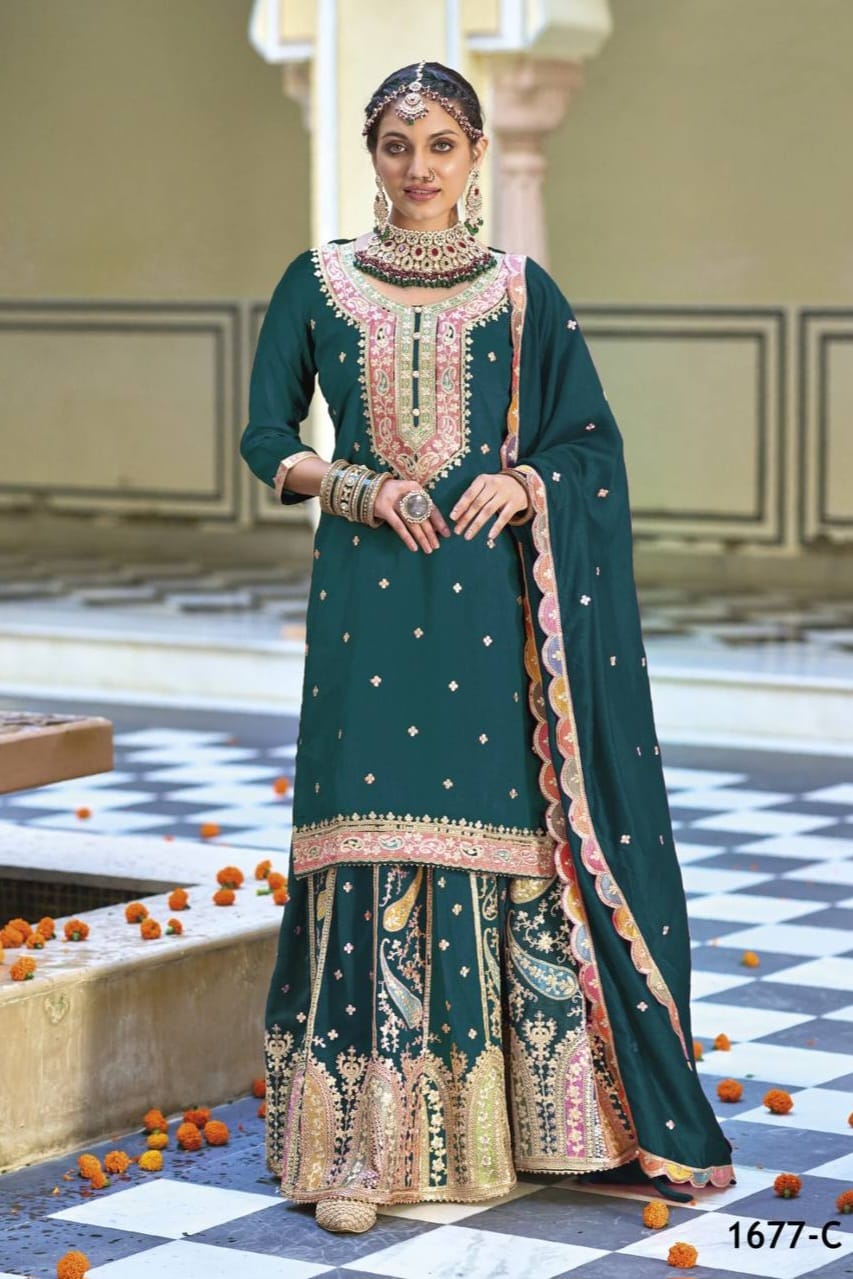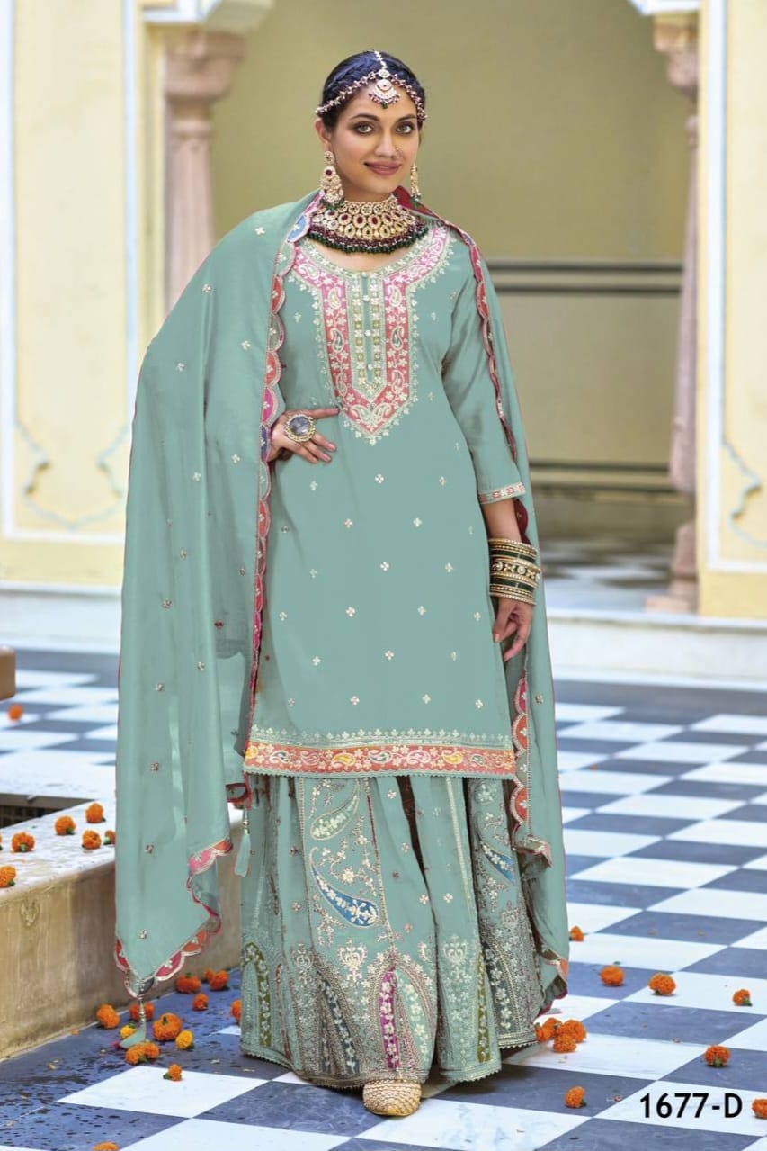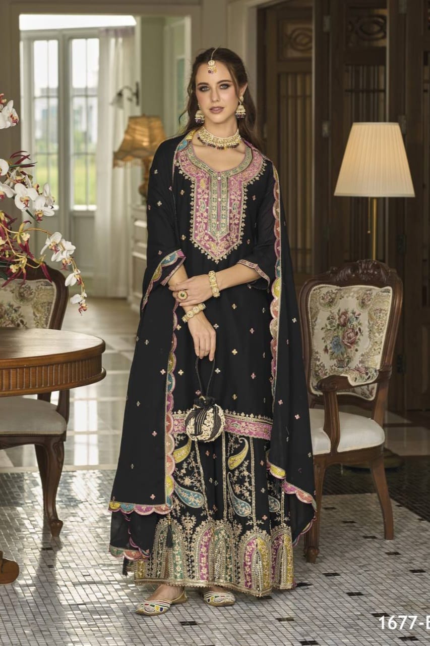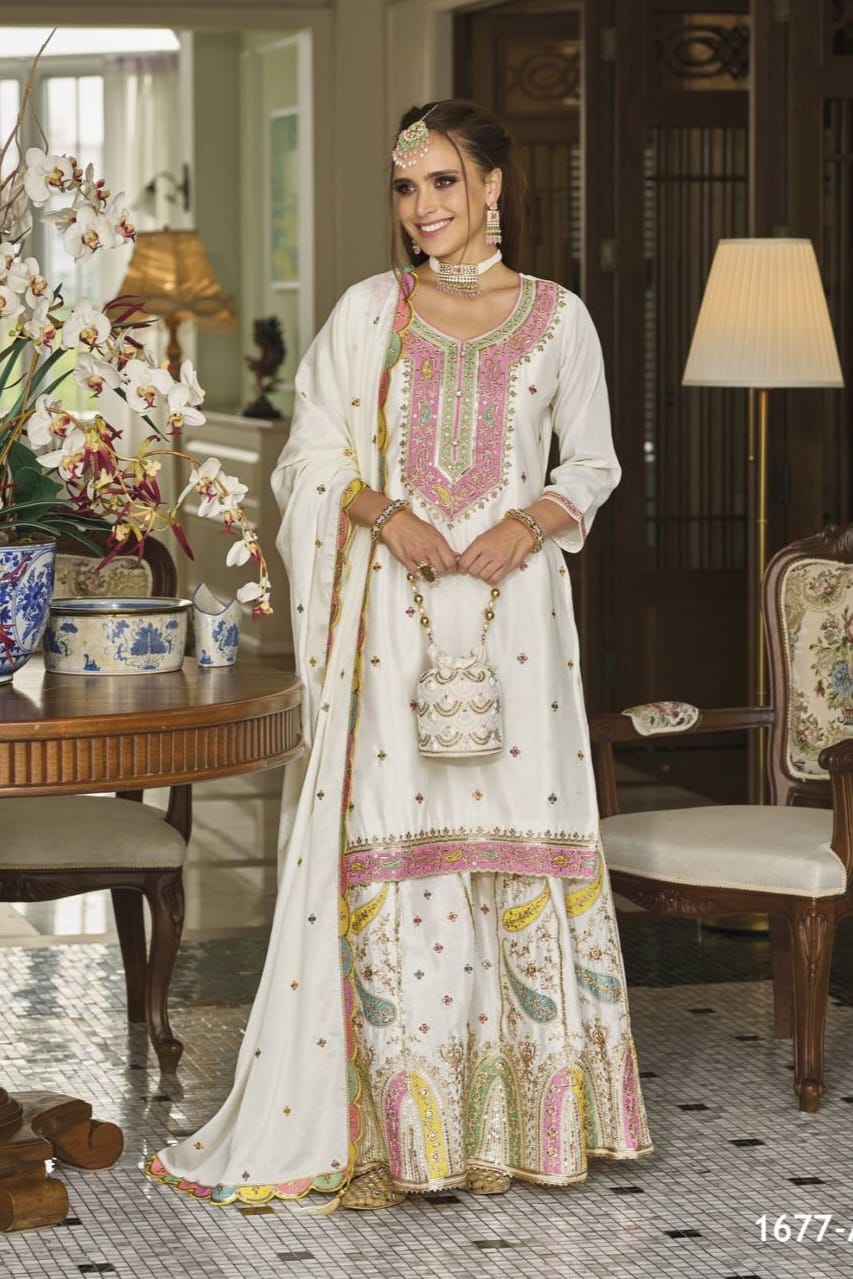 Radiate elegance in this beautifully crafted ethnic ensemble made from Heavy Chinon, adorned with multi-thread embroidery and 5mm matte sequin work — a stunning pick for festive evenings, weddings, and traditional celebrations.