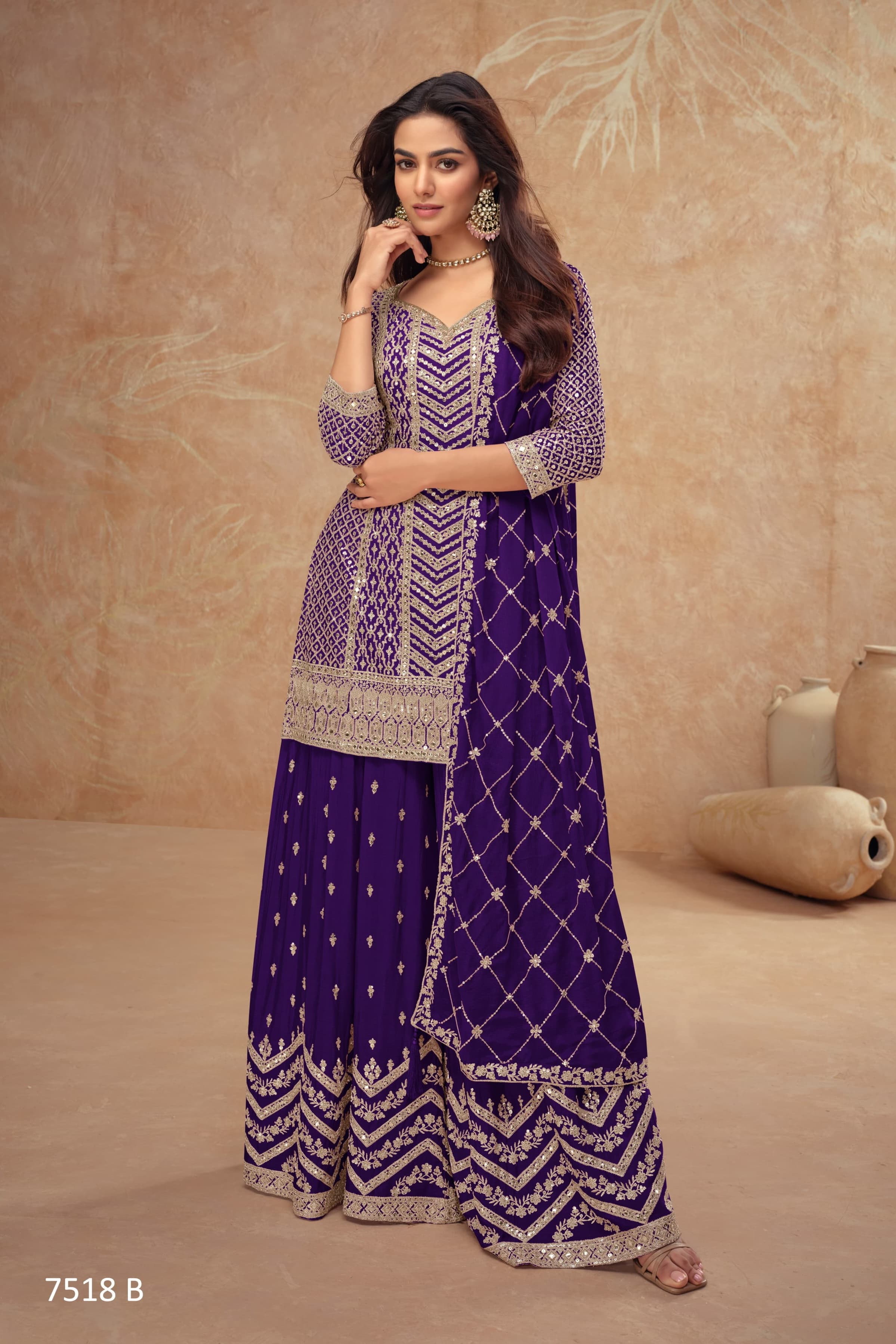 Crafted from Premium Heavy Chinon with matching embroidery, offering a cohesive designer look.