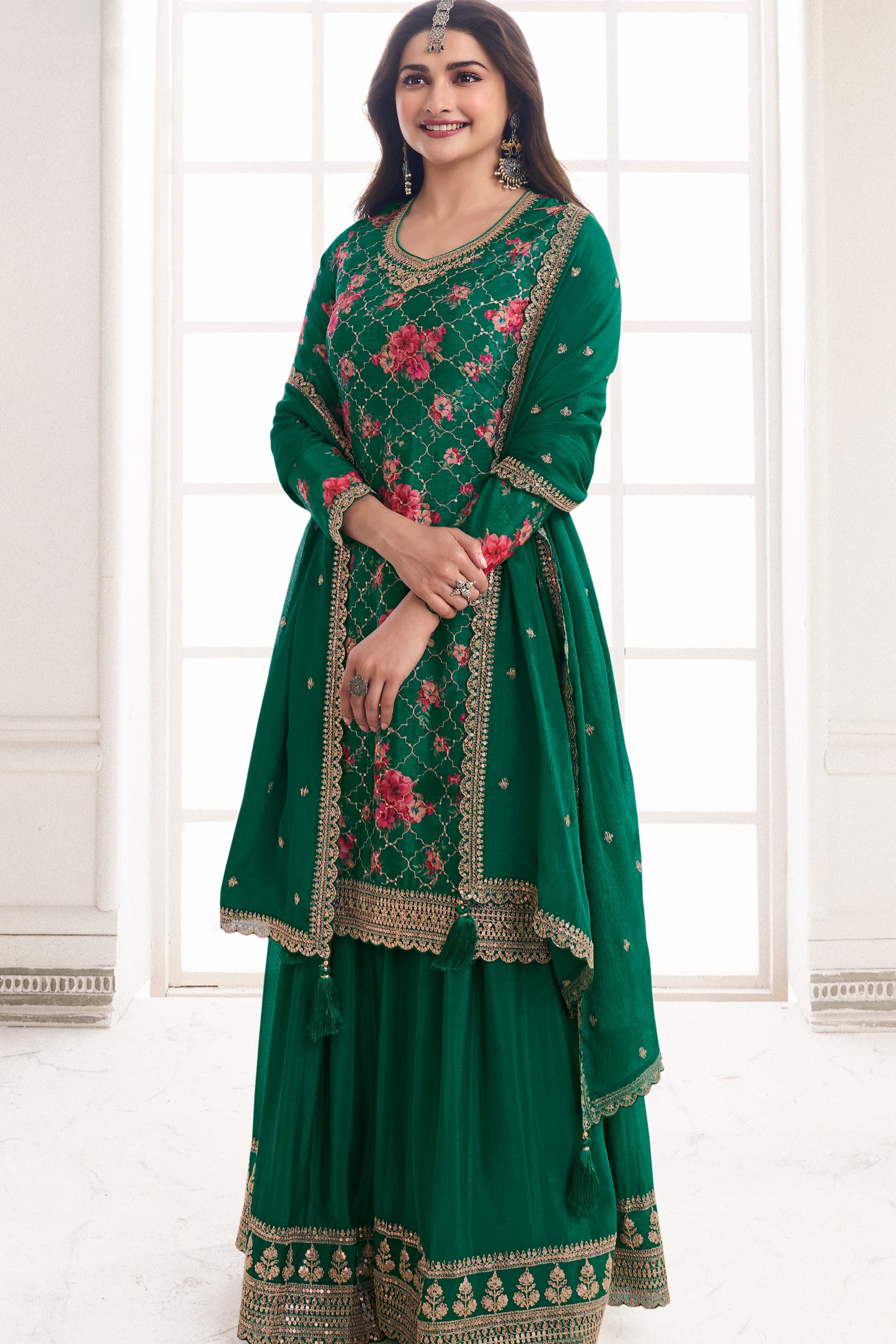 Heavy Vichitra Dupatta beautifully adorned with embroidery, sequin work, and fine coding—perfectly complementing the ensemble.