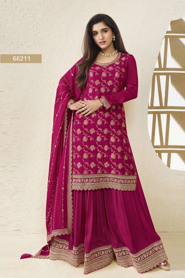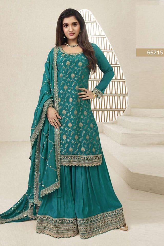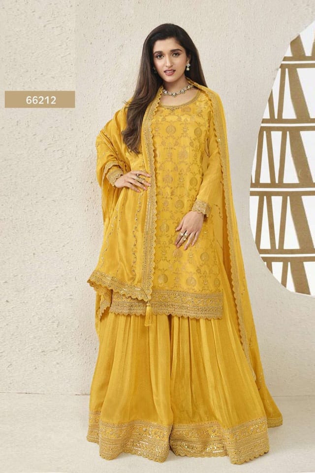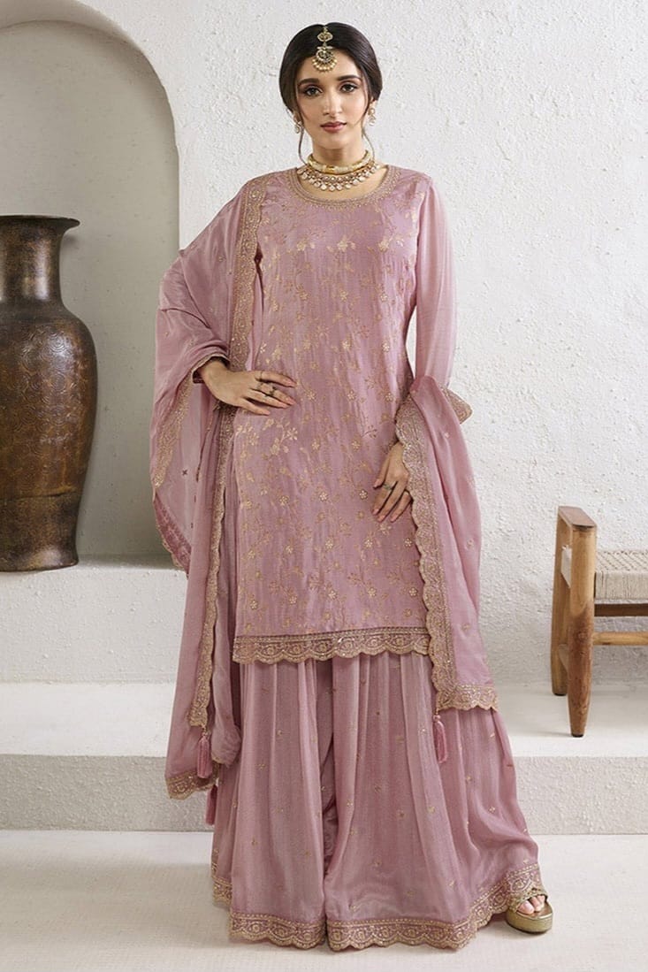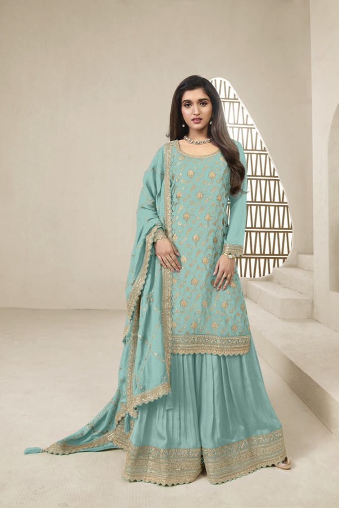 Embrace elegance with this rich Jacquard Silk Chinon suit, enhanced with multi-thread embroidery and paired with a beautifully adorned dupatta — a perfect blend of tradition and luxury for festive moments.
