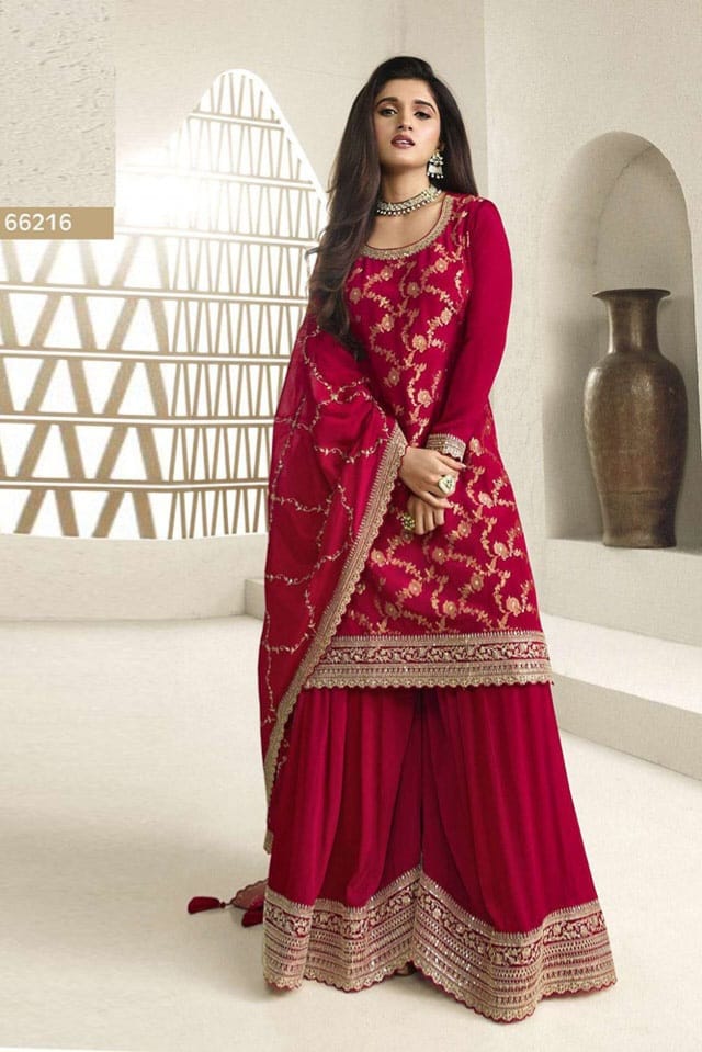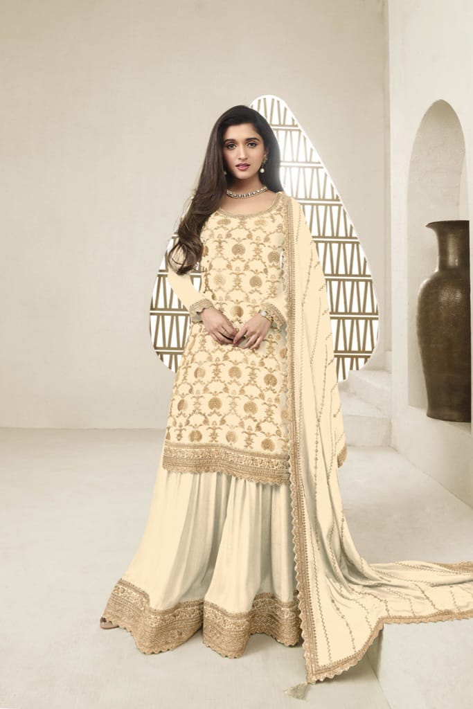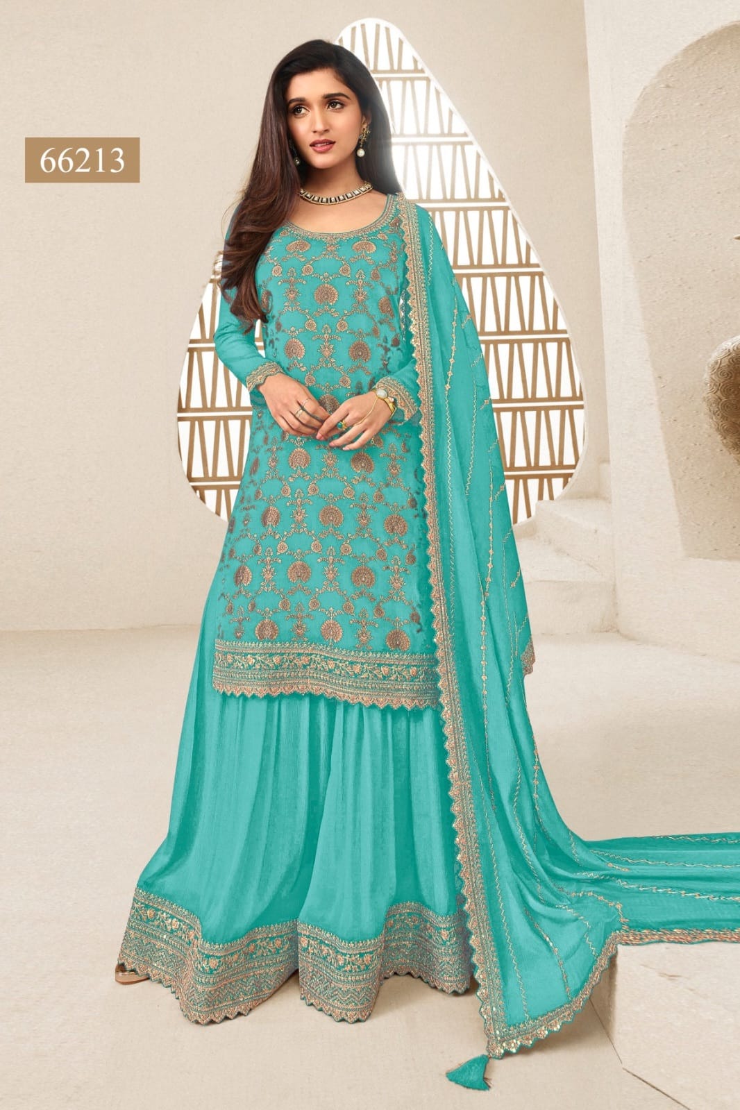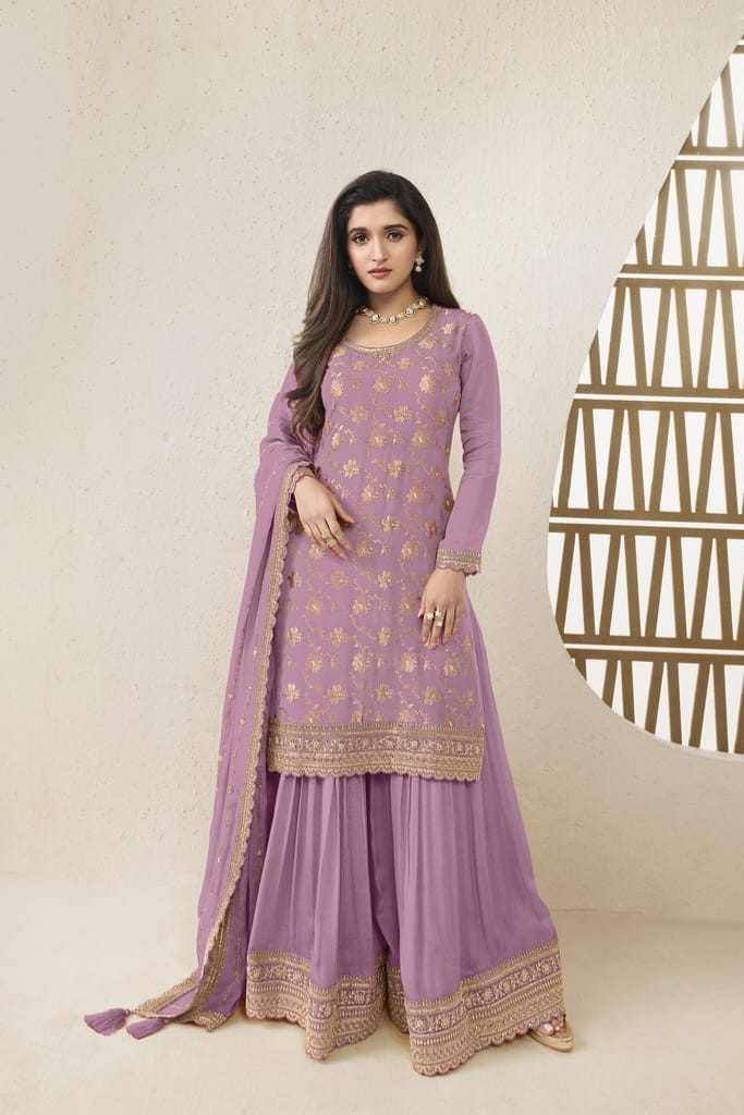Embrace elegance with this rich Jacquard Silk Chinon suit, enhanced with multi-thread embroidery and paired with a beautifully adorned dupatta — a perfect blend of tradition and luxury for festive moments.