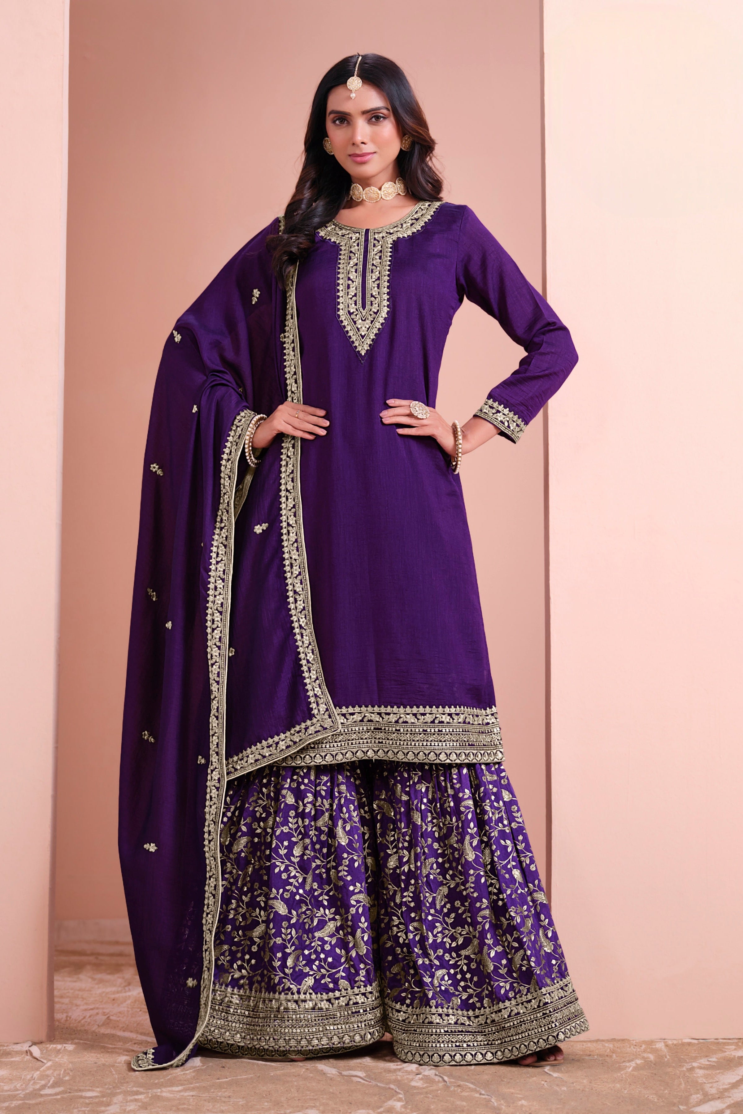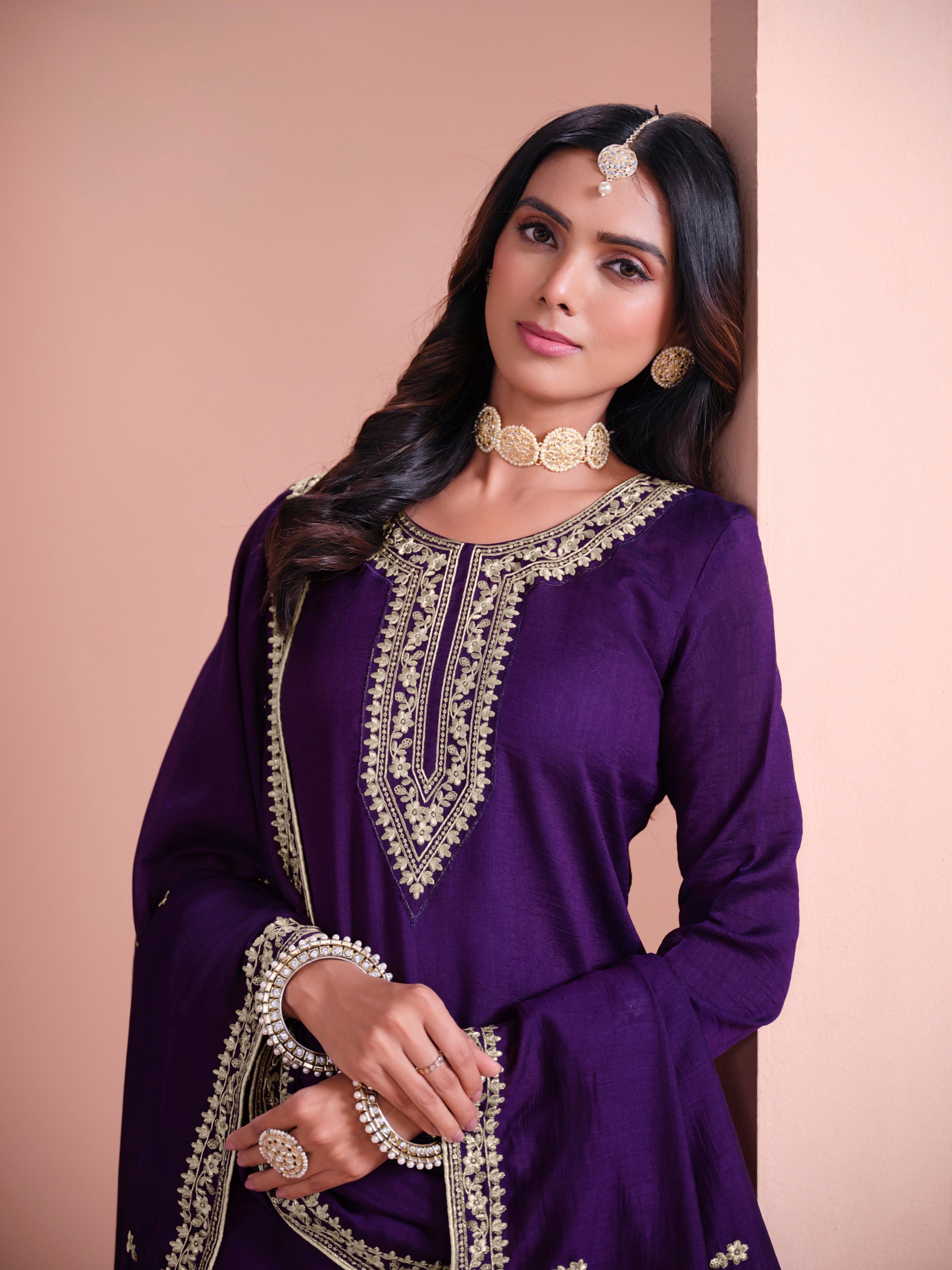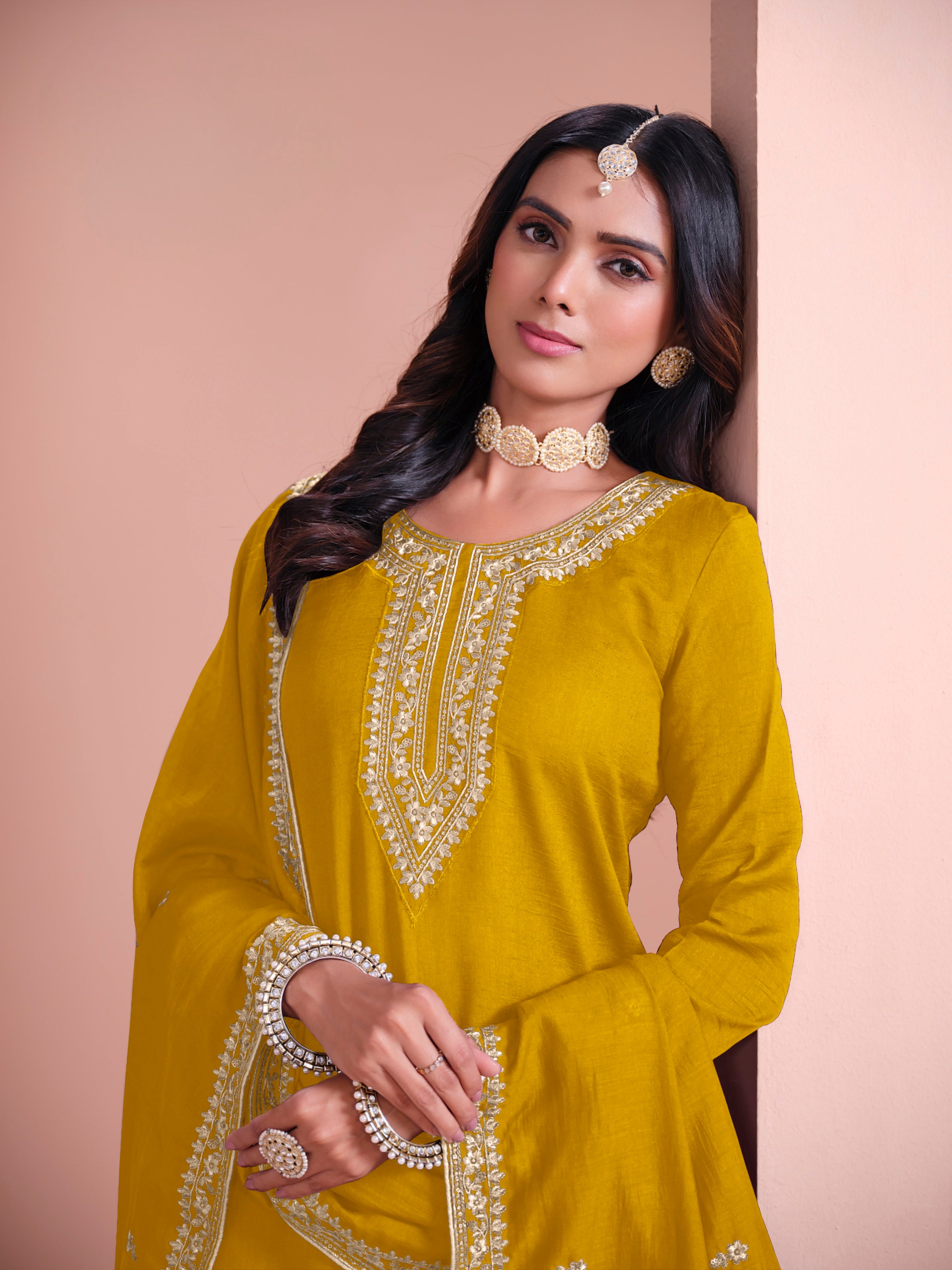 Add a touch of elegance to your ethnic wardrobe with this beautifully crafted Chinon suit set — perfect for festive moments and graceful evenings.