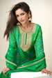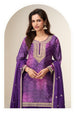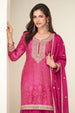 This designer ensemble features a unique poncho-style top crafted from premium real chinon silk, beautifully adorned with intricate embroidery and hand-embellished detailing. The flowing silhouette adds a touch of elegance, while the matching palazzo offers both comfort and grace. This contemporary yet ethnic look is ideal for festive and statement occasions.