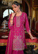 This elegant designer set features a heavy Chinon top adorned with intricate embroidery work, paired with matching heavy Chinon plazo for a coordinated and sophisticated look. The Chinon dupatta, also embroidered, completes the ensemble with grace and luxury, making it ideal for festive occasions, weddings, and parties.