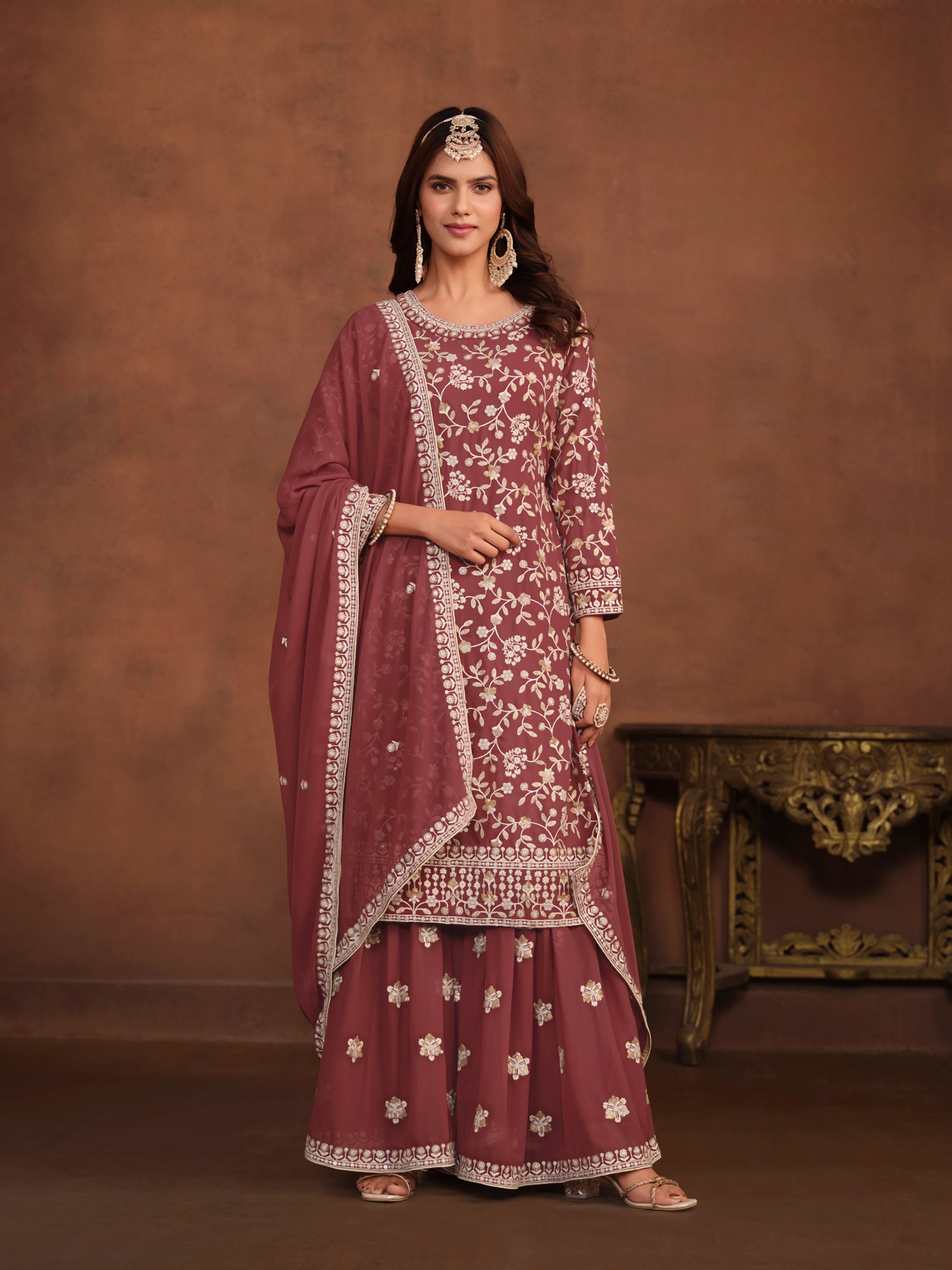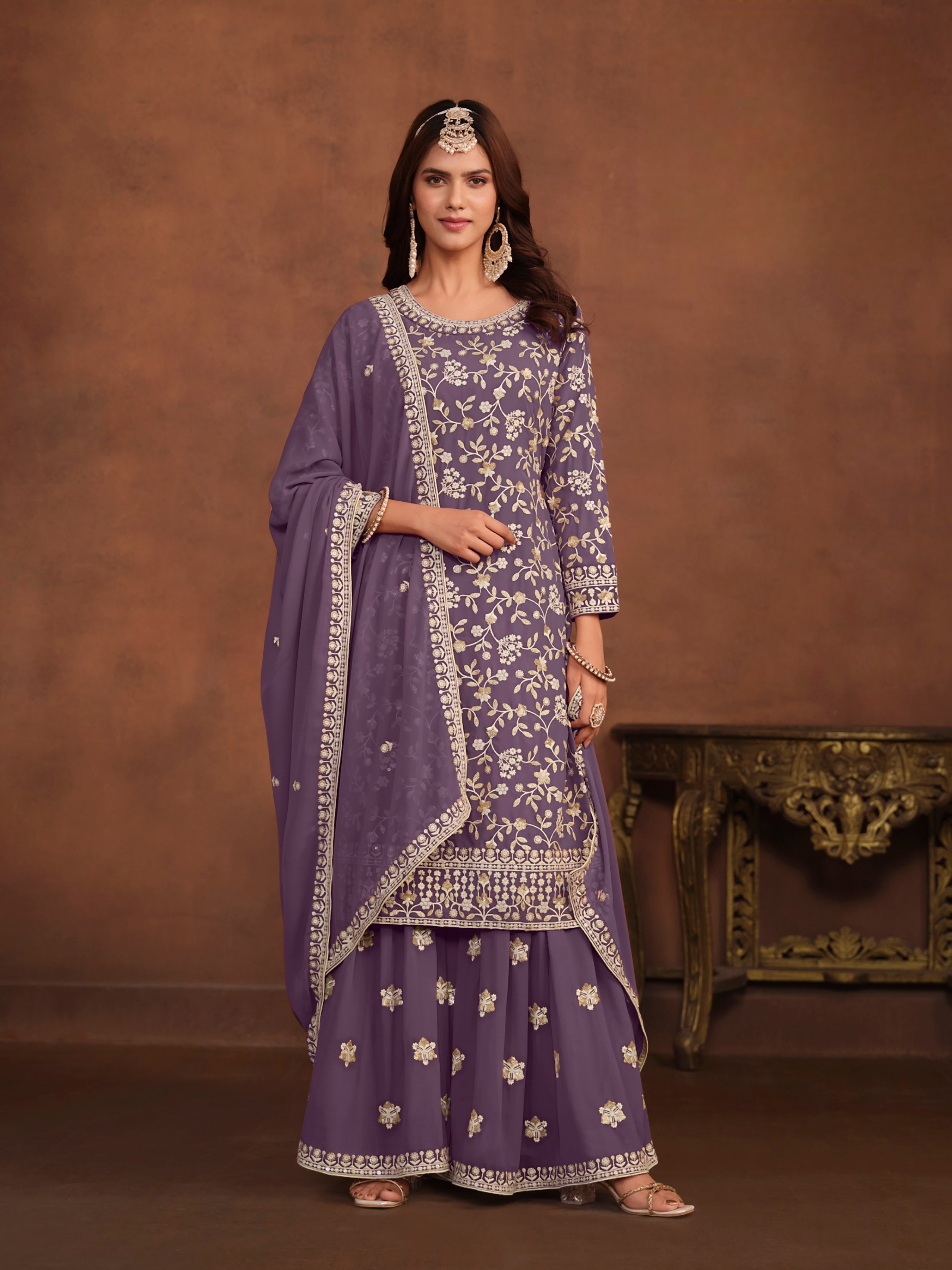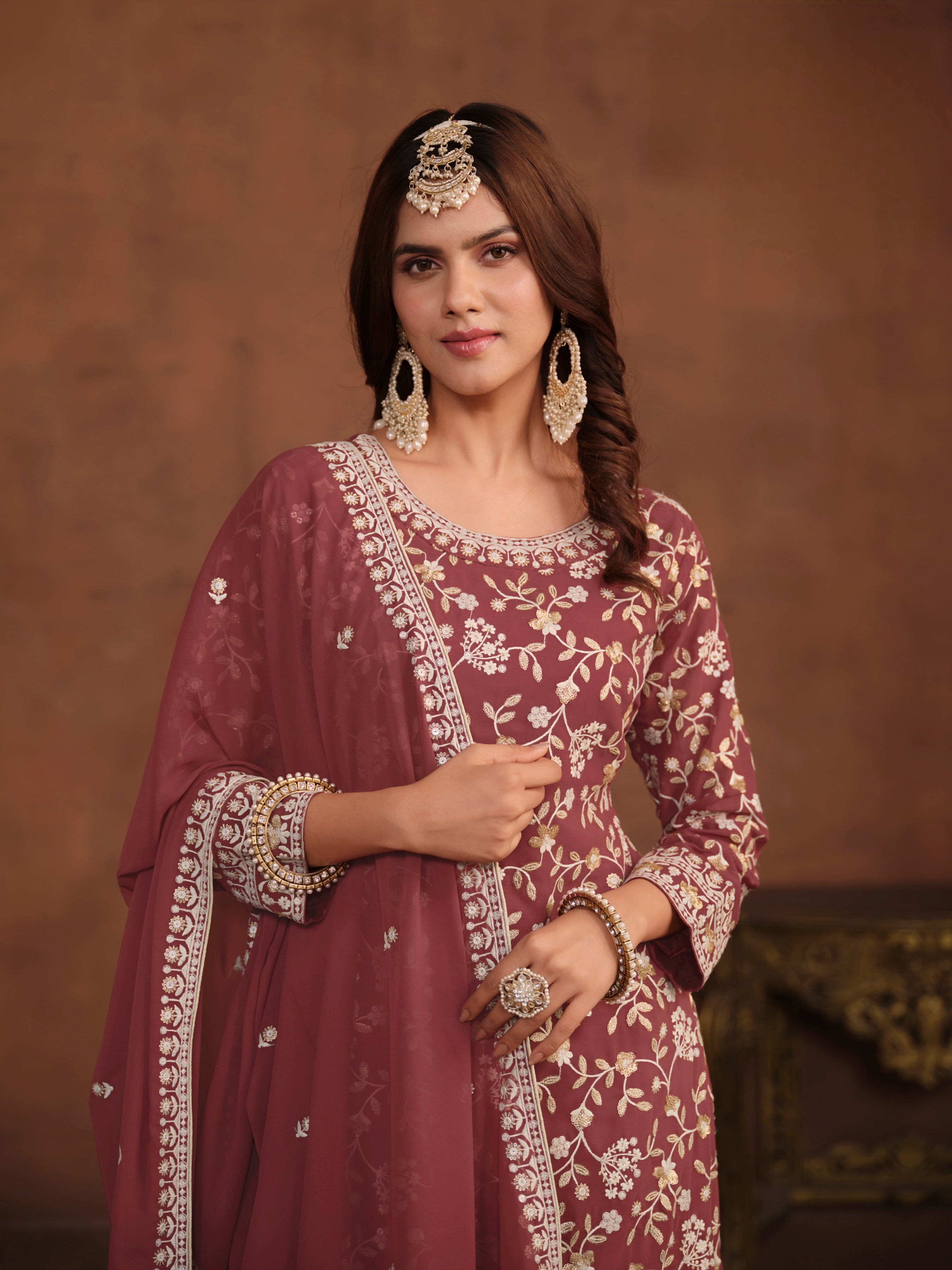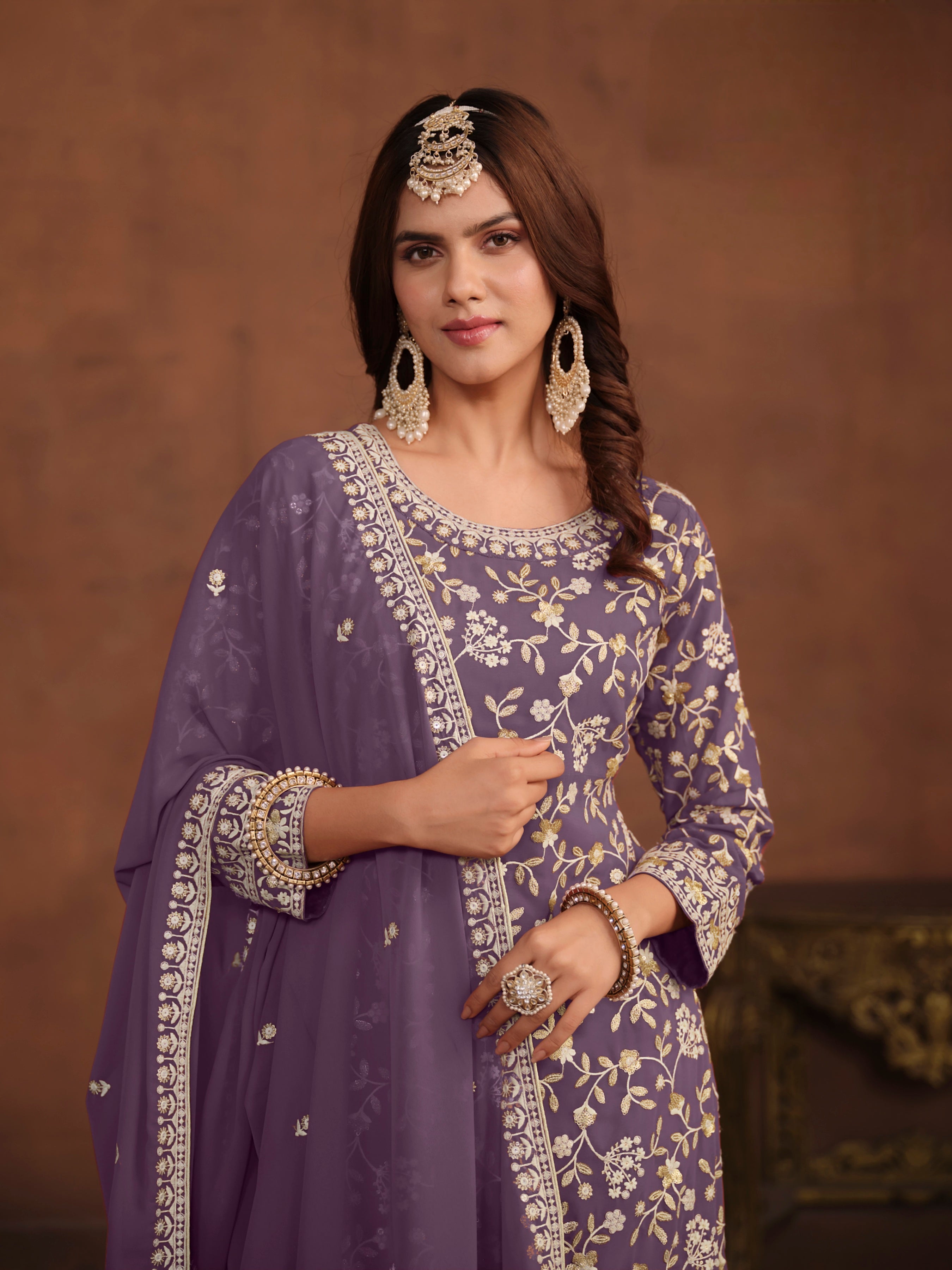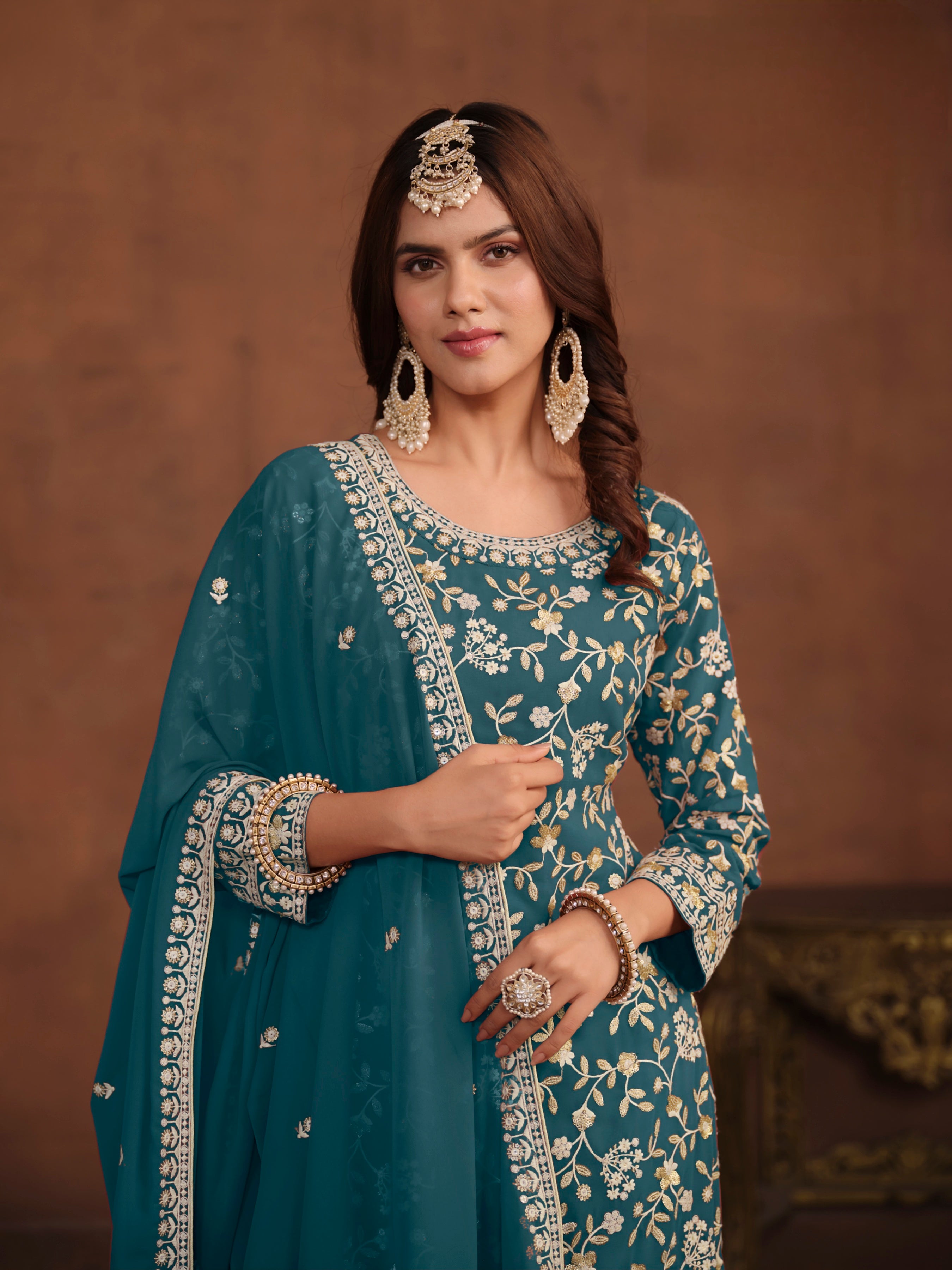 Add a touch of effortless grace to your ethnic wardrobe with this beautifully designed suit set, tailored in breathable and flowy Faux Georgette — ideal for festive occasions, casual wear, or semi-formal events.