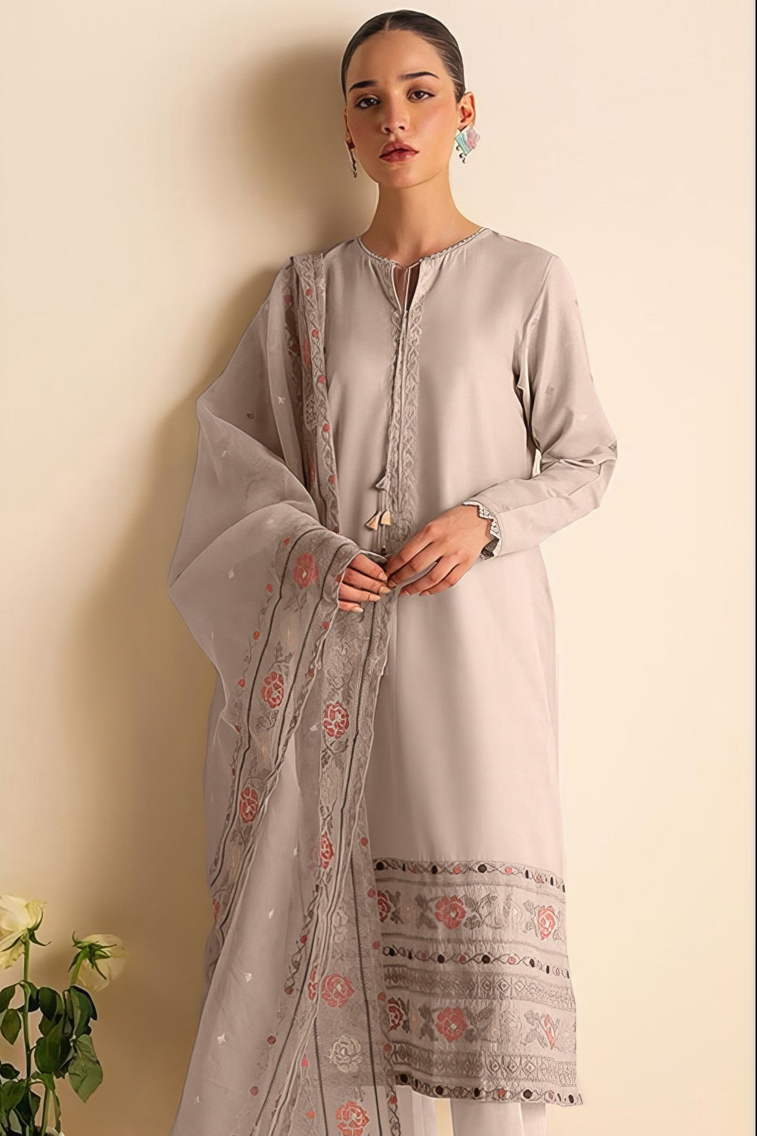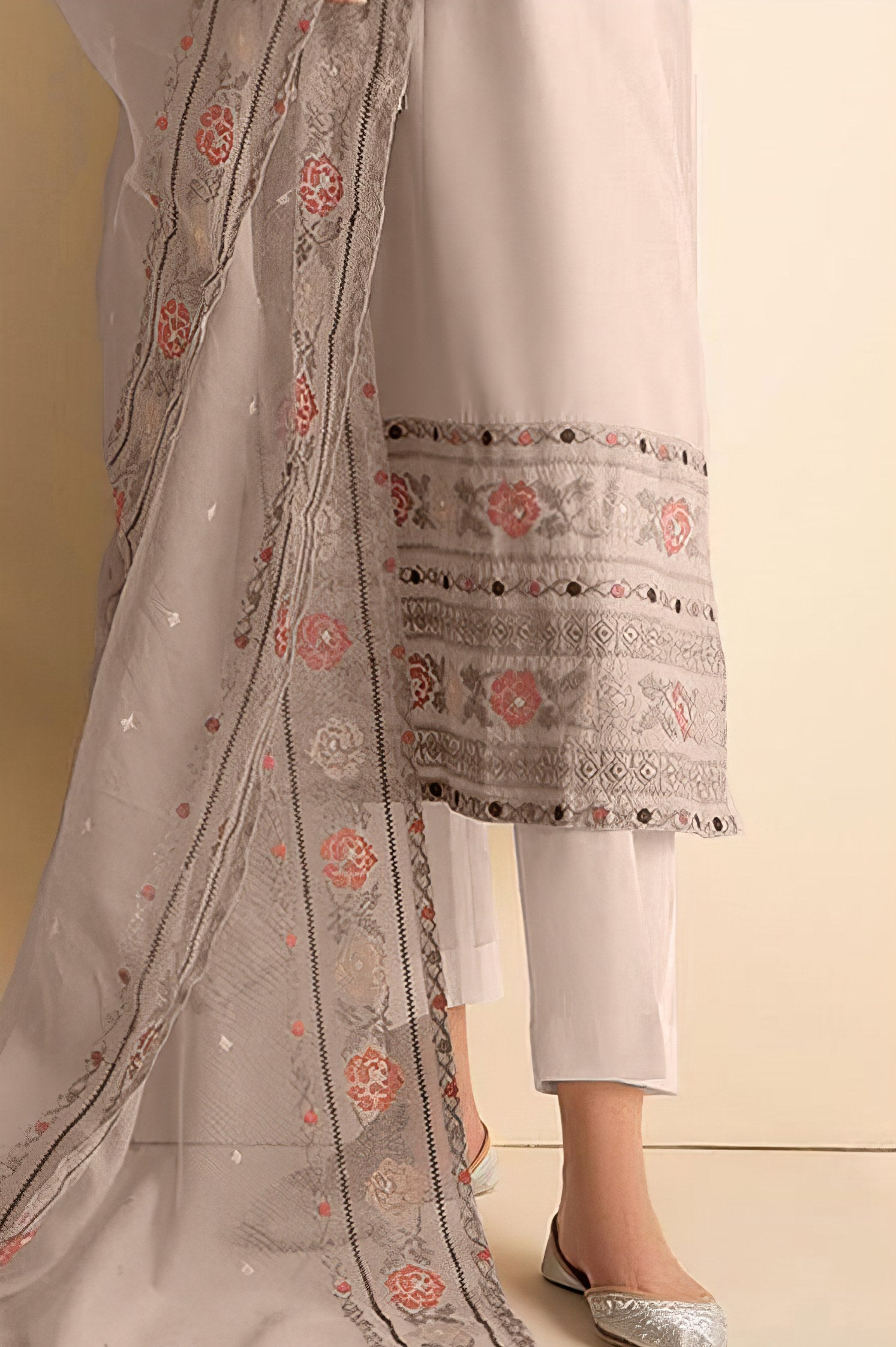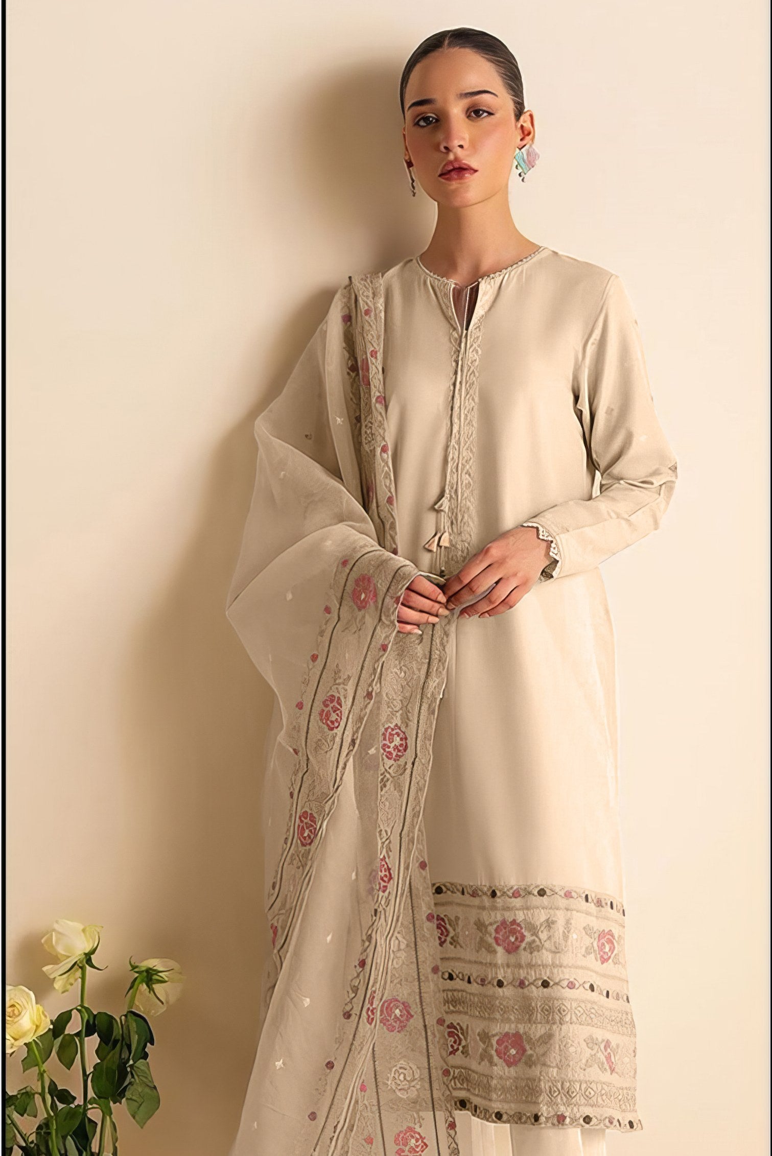 Luxurious in texture and fluid in drape, this fully stitched Viscose Silk suit set is the epitome of understated glamour. Paired with a beautifully flowing bottom and a sheer heavy organza dupatta, it’s ideal for festive gatherings, celebrations, or evening elegance.