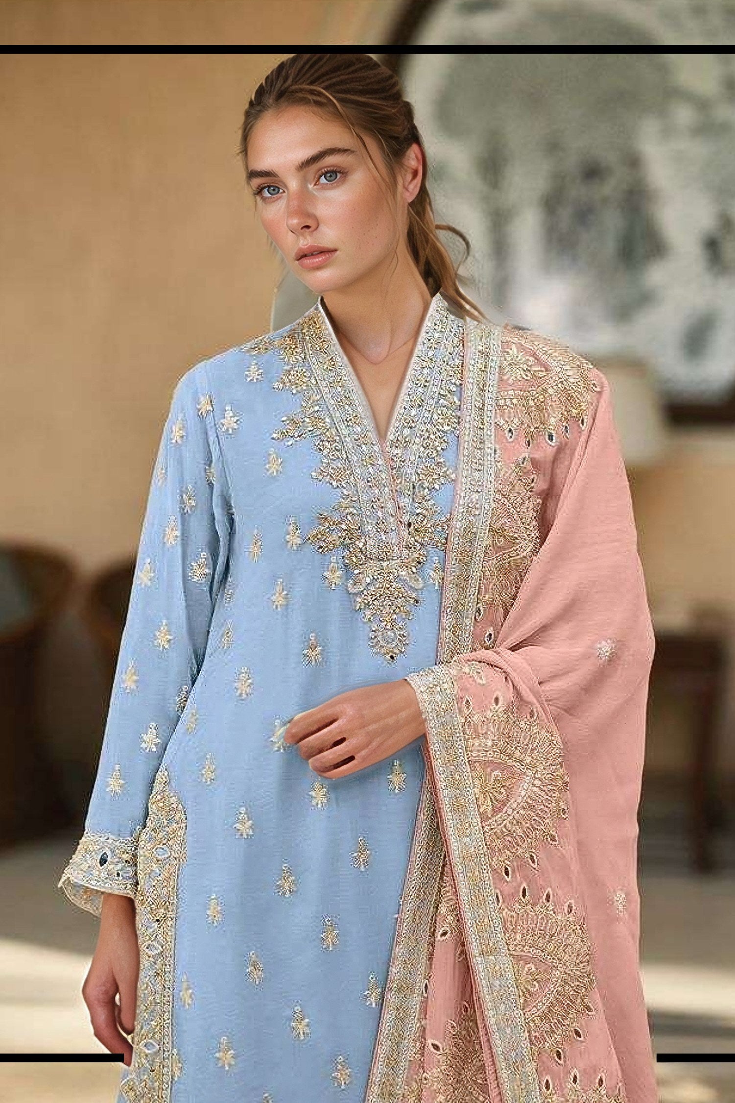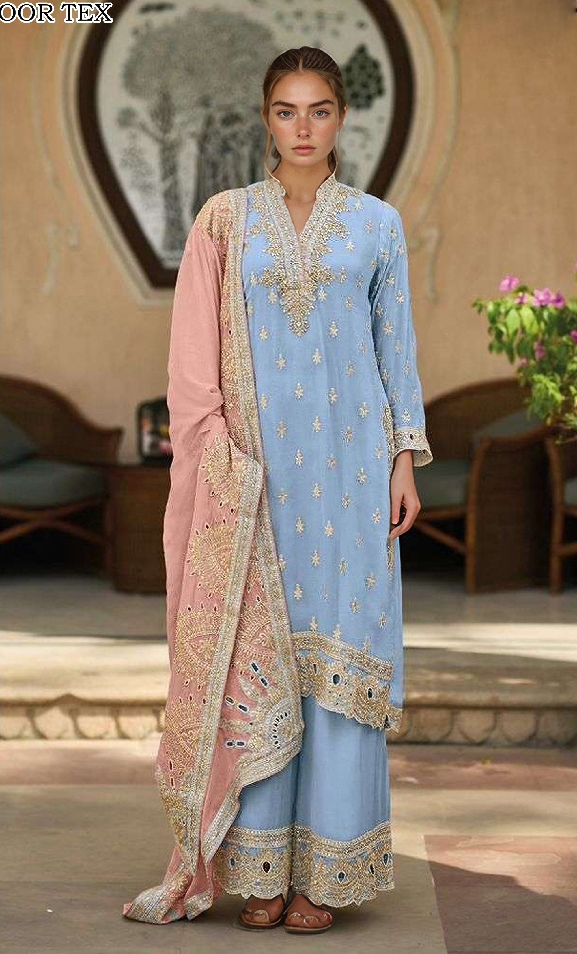 Light as air and effortlessly graceful, this fully stitched Heavy Chiffon suit set is crafted for fluid movement and timeless elegance. With top, bottom, and dupatta all in rich chiffon, the set offers a sophisticated, coordinated look—perfect for festive occasions, celebrations, or stylish evenings out.