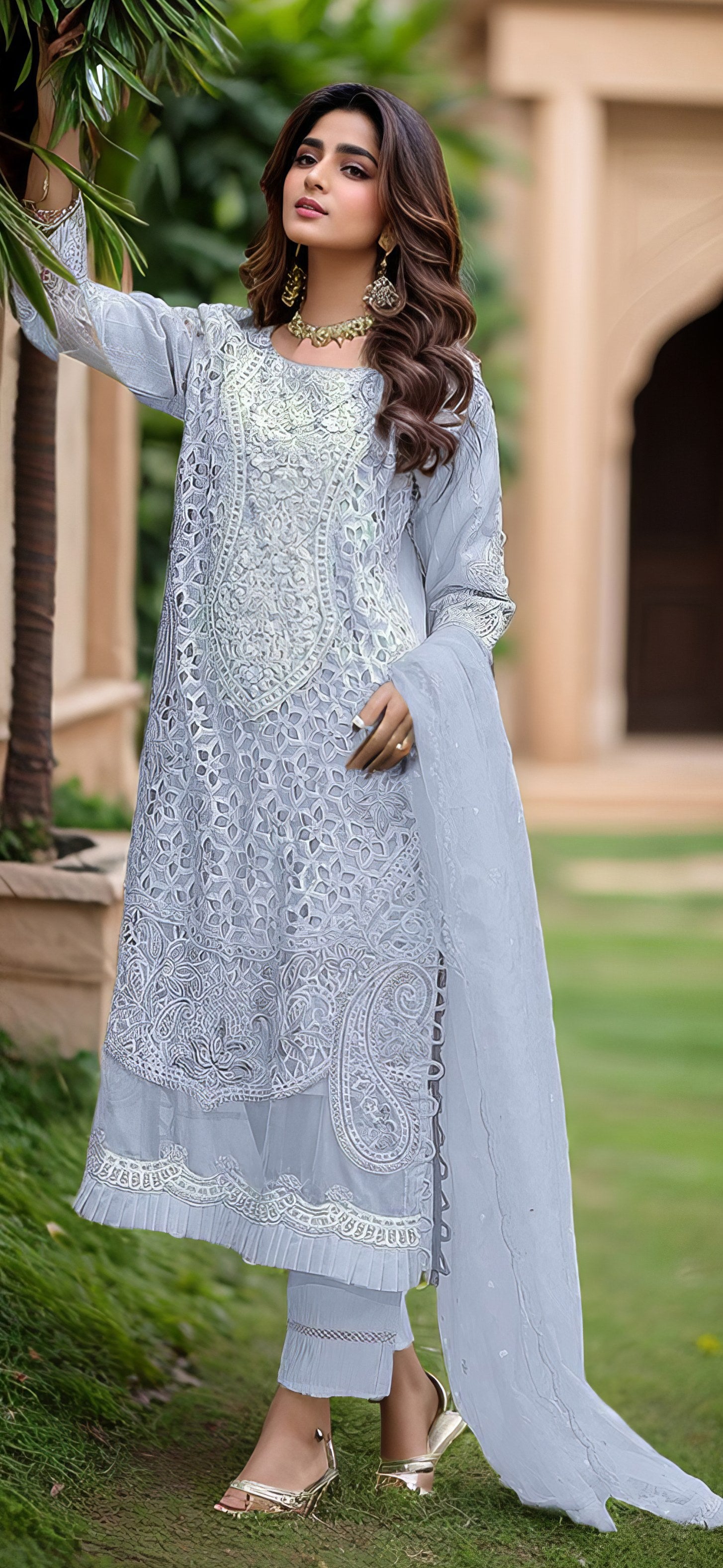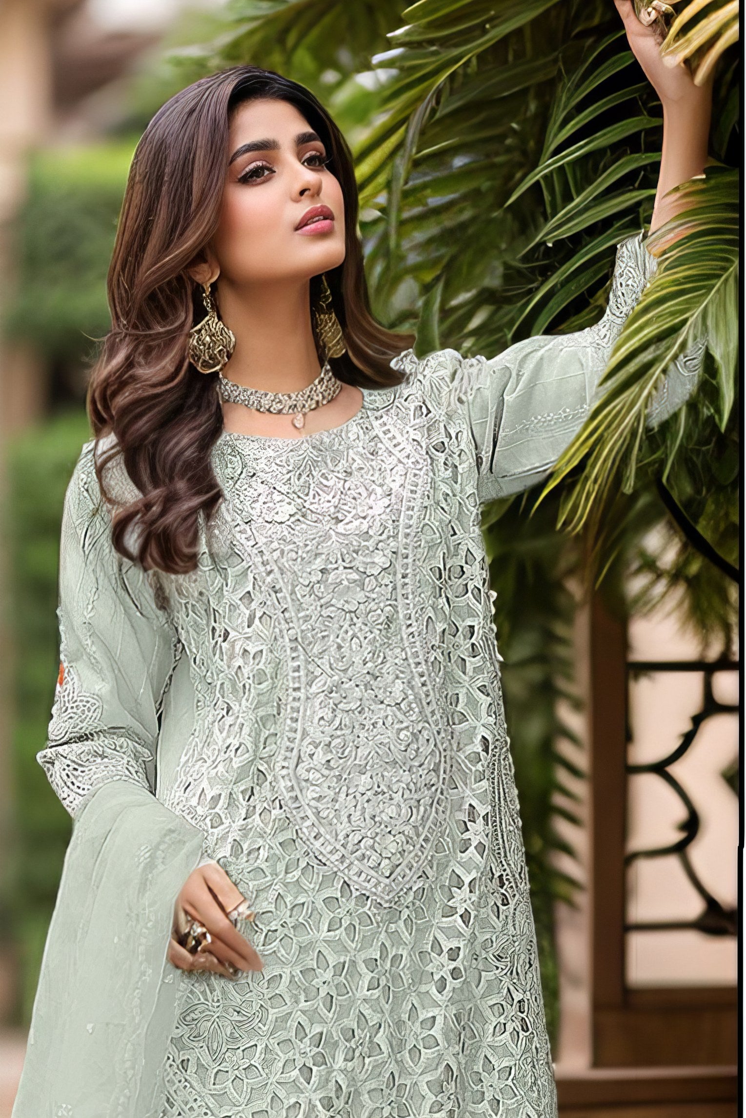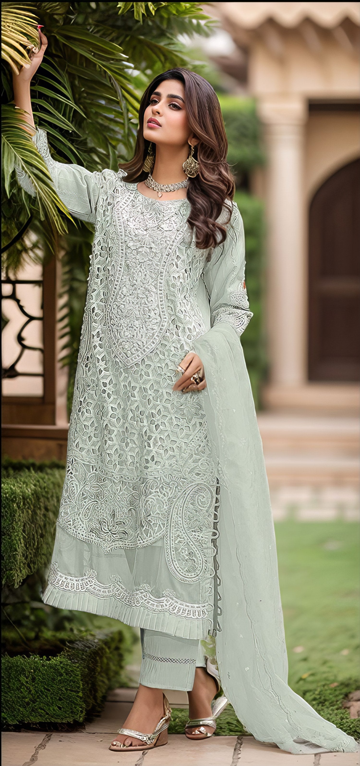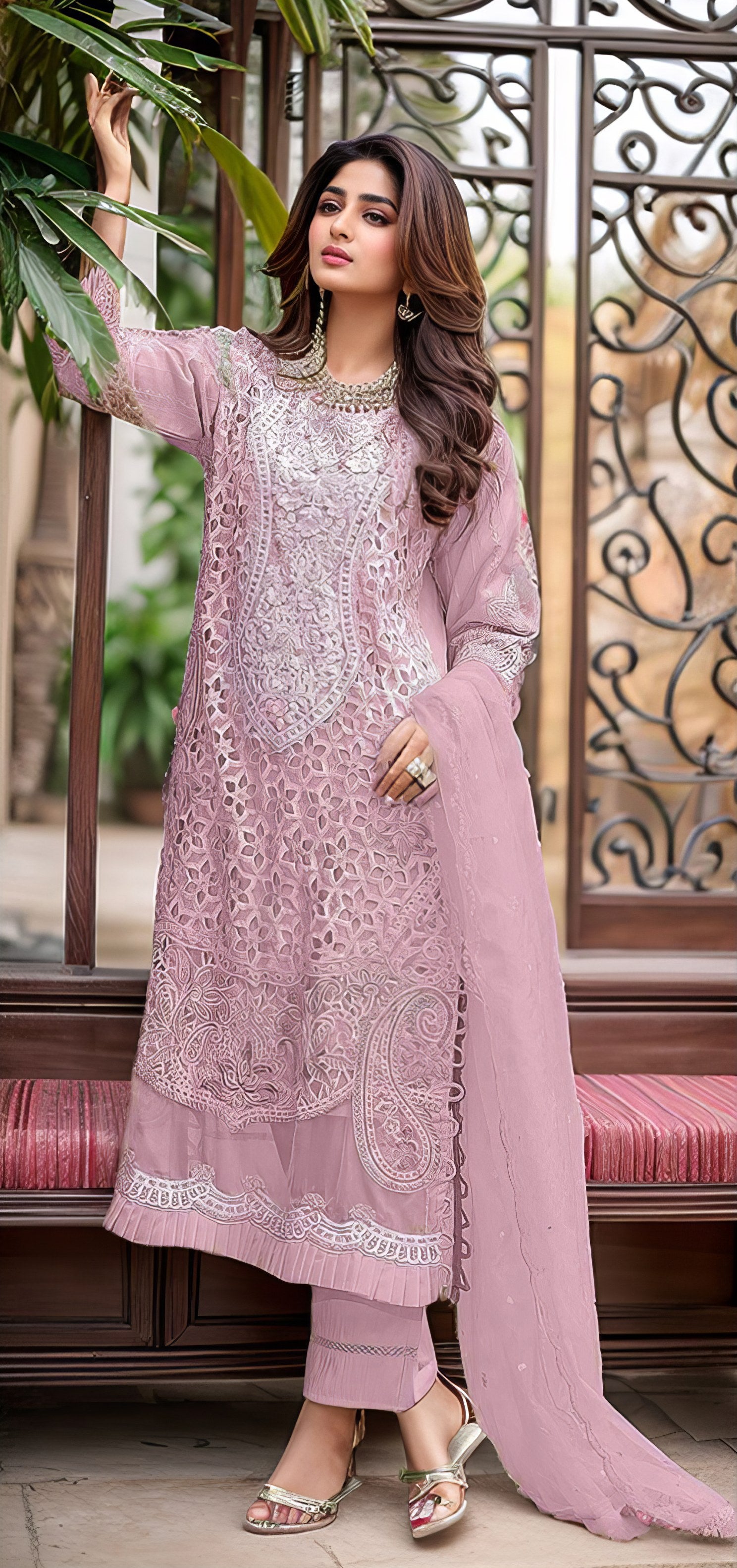 Refined and festive-ready, this fully stitched Heavy Organza suit set is a stunning blend of structure and elegance. The cut work detailing on the top adds artisanal charm, while the rich Santoon bottom and a matching Organza dupatta elevate the ensemble—perfect for celebrations, parties, or formal gatherings.